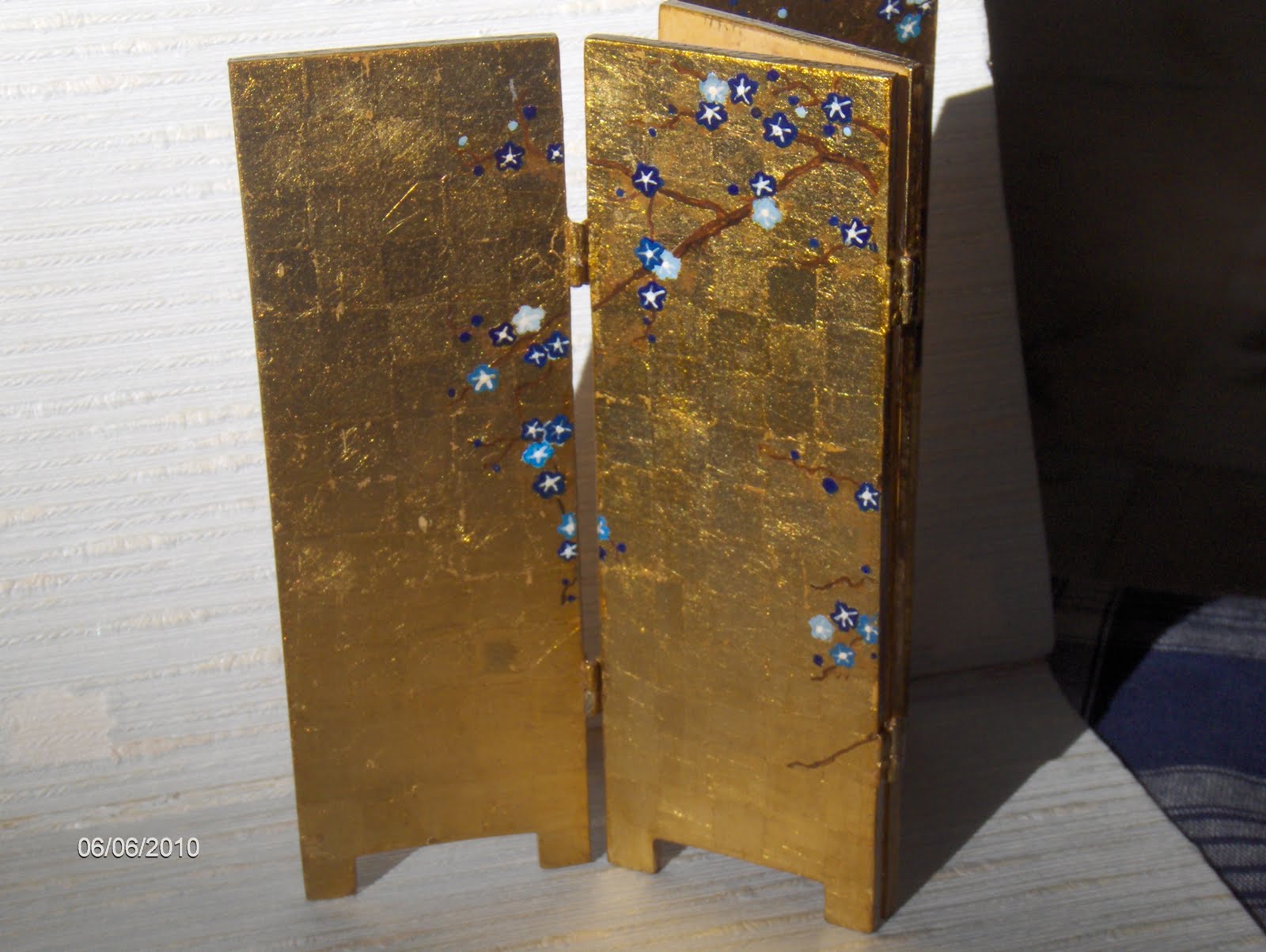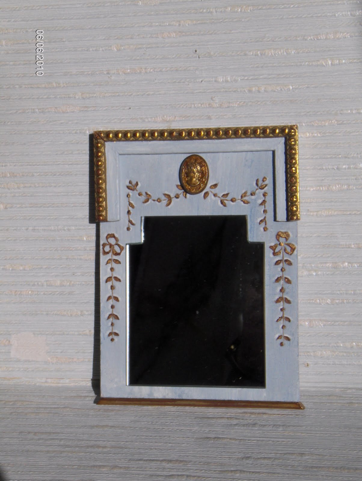 Um espelho estilo gustaviano (lindo, lindo) e um biombo chinês forrado a folha de ouro e decorado com uma pintura muitíssimo mimosa. Estas duas peças serão utilizadas quando eu fizer um atelier de costura.