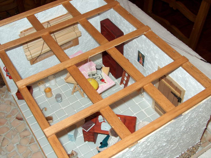 Para a estrutura, pedi ajuda ao meu filho mais velho, o Carlos, que considera as Casas de Bonecas um hobby menos nobre, já que a sua grande paixão são os combóios.