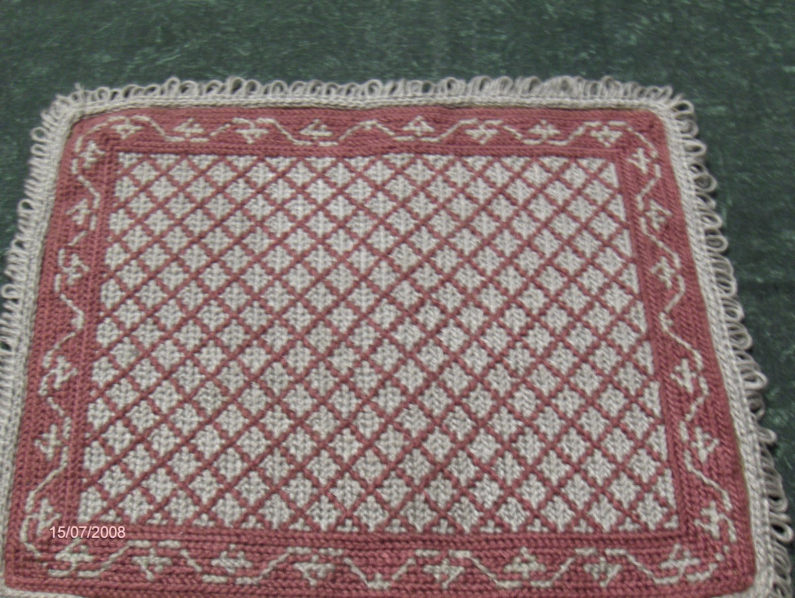 This rug is embroidered in "point of Arraiolos. The diagram was adapted by me.Como os medalhões centrais escolhidos eram demasiado grandes, vi-me obrigada a reduzi-los.