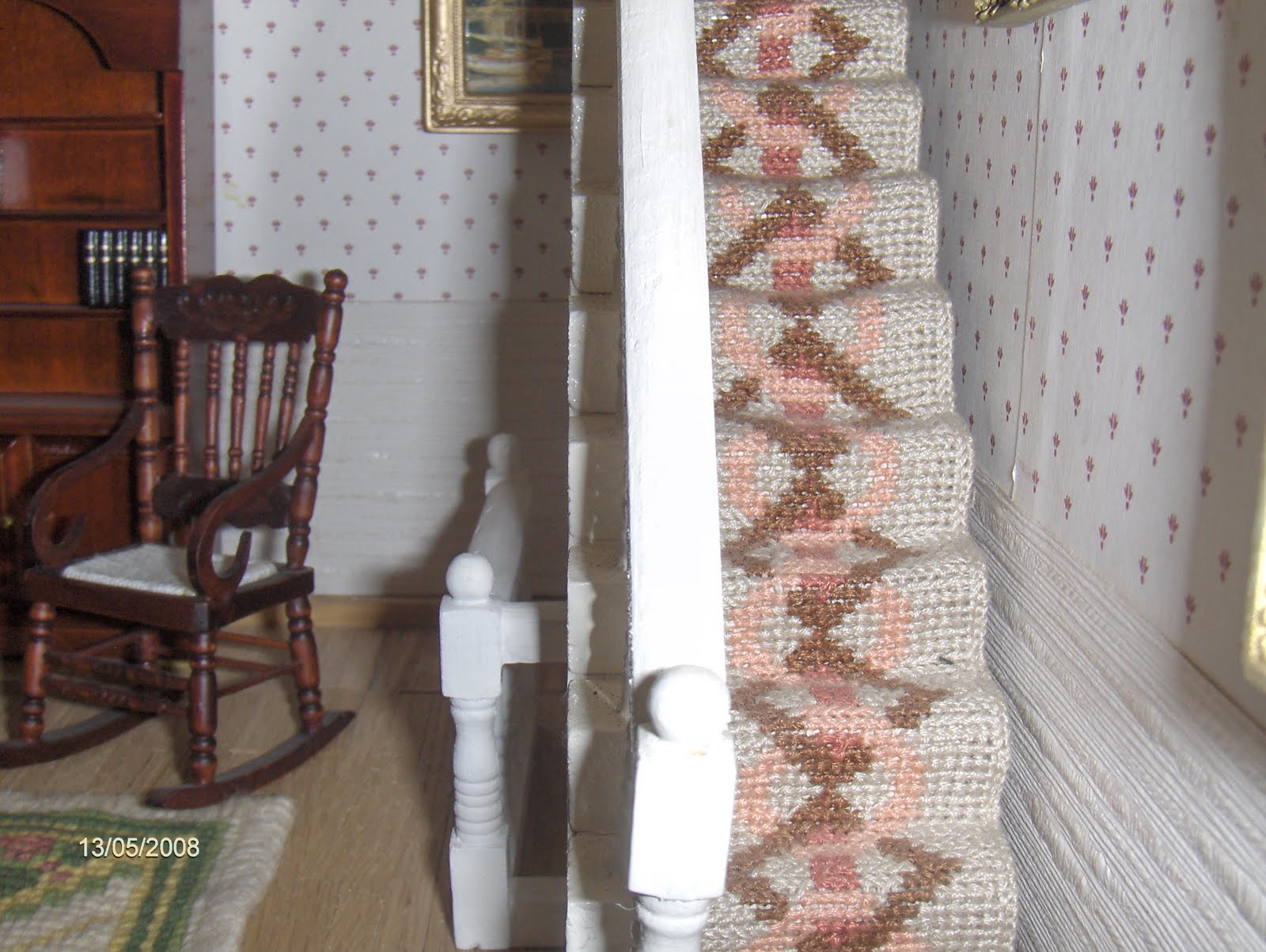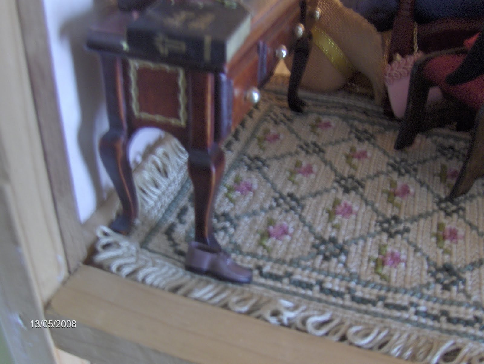 A exemplo das divisões anteriores, a carpete desta divisão está, igualmente, bordada em Ponto de Arraiolos. Foi a minha primeira tentativa neste campo.