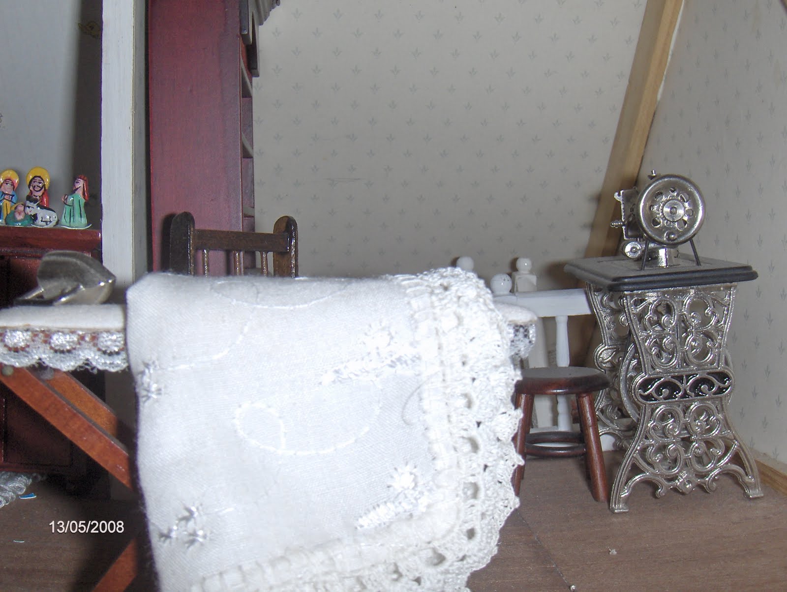 Only one sewing machine and an ironing board.Sabem onde adquiri a máquina de costura? Em ... Fátima. Estava numa montra. Fiquei encantada e, ainda por cima, tinha as medidas adequadas.